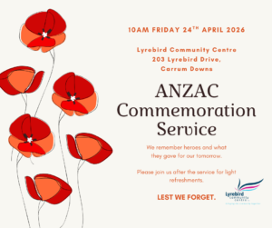 10am Friday 24th April 2026 Lyrebird Community Centre 203 Lyrebird Drive, Carrum Downs